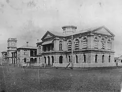 Construction of the new Toowoomba law courts and public offices began in 1876. They replaced an earlier, smaller building, also located in Margaret Street, which was constructed in 1863. The new building was much larger than the previous one and of a more imposing design, indicative of the sense of prosperity and permanence felt by the town.[1]