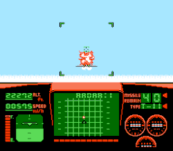 Gameplay takes place from the cockpit's point of view and consists of two main themes: dogfighting and landing the aircraft. For the dogfights, the player is allowed to pick between three missile types, each varying in the target locking area they can be fired at. Landing of the aircraft can be particularly difficult as it requires the player to control both speed and angle of aircraft. The point of view for the final part of the landing sequences is from the side of the aircraft carrier with the F-14 coming in from the right side of the screen.