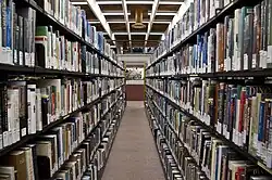 Items are largely split between the different levels of the building by discipline and subject.[12] Over 80 kilometres (50 mi) of shelving is used to house the library's collection,[13] with over 1.6 million items on its open shelves.[14] As of March 2016, the library has approximately 15,000 vinyls in its collection.[15]