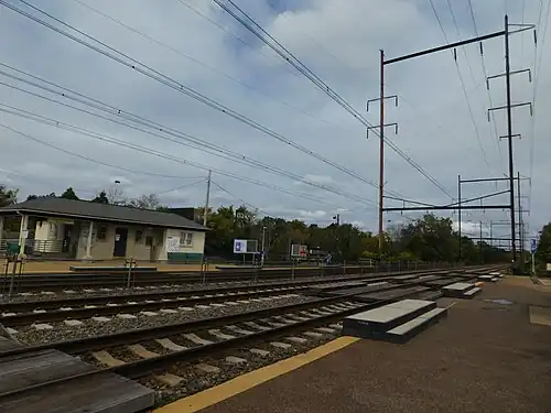The station is located along the Northeast Corridor, owned by Amtrak. It is 14.8 miles (23.8 km) from Suburban Station. In 2017, this station saw 1,160 boardings on an average weekday. Amtrak does not stop at this station.