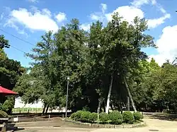 An old tree is located close to the Nishinomaru-enokida Gate at Nagoya Castle. Its height is 16 metres and it is eight metres at the base. Over 600 years old, the tree was already there when the castle was constructed. It is the only government-designated natural monument in Nagoya.[9] The tree regained its viability despite damage from air raids in 1945. Tokugawa Yoshinao, the first feudal lord of Owari, and thus the castle, is said to have decorated his dinner tray with torreya nuts from this tree before going into battle in Osaka, and later for New Year's celebrations.