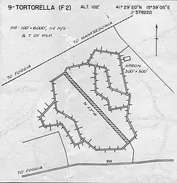 Tortorella Airfield was a temporary wartime facility built by the US Army Corps of Engineers. Construction was initiated shortly after Allied forces seized control of the Tavoliere plain around Foggia, Apulia, Italy.[1]