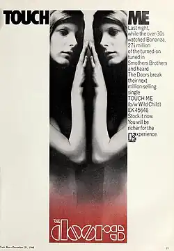 "Touch Me" is a song by the Doors from their 1969 album The Soft Parade. Written by guitarist Robby Krieger in late 1968, it makes extensive use of brass and string instruments, including a solo by featured saxophonist Curtis Amy.[3][4]