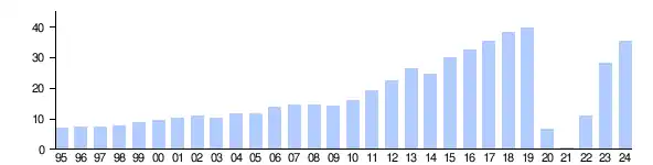 | Country | 6/2025 | 2024 | 2023 | 2022 | 2021 | 2020 | 2019 | 2018 | 2017 | 2016 | 2015 | 2014 | 2013 | 2012 |
