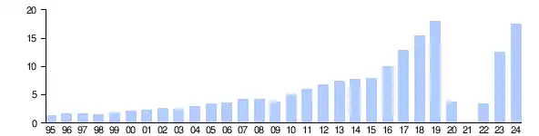 | 2024 | 17,583,901 | 39.5%[12] |