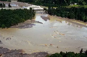 ![]() Mouth of the river in flood near Castle Rock before the 1980 eruption of Mount St. Helens | |