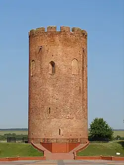 The Tower of Kamyenyets (Belarusian: Камянецкая вежа; Russian: Каменецкая башня), also called the White Tower (Belarusian: Белая вежа, romanized: Bielaya vieža), is the main landmark of the town of Kamyenyets in Belarus. The name Bielaja Vieža (alternative transliteration: Belaya Vezha), which literally means White Tower or White Fortress in Belarusian, presumably derives from the tower's proximity to the Belavezhskaya Pushcha Forest, but not from its color, which has been brick-red through the ages, never white.[1]