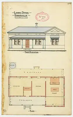 A "new" Lands Office was built in Townsville about 1885.[2] However, despite repairs in the early 1930s, it was decided to move the Lands Department into a new Queensland Government building housing a number of government departments.[3]