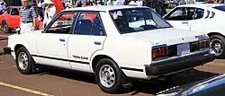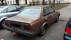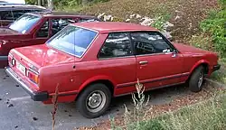 In its third incarnation, the Carina followed the fashion of the time with a still more angular overall look and four square headlights.[20] The Coupé was no longer a hardtop and was updated with halogen rectangular headlights, which were also installed on the Carina Surf (wagon) and were used in export, while the Carina Van received twin, round headlamps set in a black plastic surround.[1][21] The car followed its predecessors in retaining a front-engine rear-wheel-drive configuration even though by then competitor manufacturers were following a trend of switching to front-wheel drive in this class. The third generation was first released two months after the related Celica, in September 1981, and was the last Carina to use rear-wheel drive.[22] More precise rack and pinion steering replaced the recirculating ball used in previous generations; the A60 Carina used a MacPherson struts up front and a five-link, solid rear axle – except for the more powerful, fuel injected versions which have independent (semi-trailing arm) suspension at the rear.[1] The RWD Corona shared its chassis with this vehicle, when it was updated the succeeding year. The Carina was famously used by private teams racing for Japan in the Dakar Rally in the two-wheel-drive class for both 1981 and 1982. The Carina managed to achieve four championships in the marathon class divisions.