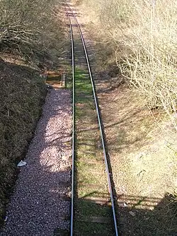 The line at the station site is still operational (2017), serving the Killoch Washery to the south-east, beyond Drongan.