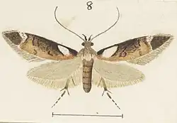 3. ^ a b Francis Walker (1864), List of the Specimens of Lepidopterous Insects in the Collection of the British Museum, Part XXIX. - Tineites, London: Natural History Museum, London, p. 651, Wikidata Q110191308