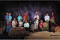 Pha khao ma (Thai: ผ้าขาวม้า Thai pronunciation: [pʰâː kʰǎw máː])) is a versatile plaid fabric woven for centuries in Thailand. It serves numerous purposes, including being worn as a waistband by Thai men, used as a handkerchief, fan, or head covering to protect against the sun, and even used as a makeshift cradle or to carry goods. The cloth's practicality and sustainability have attracted the attention of designers in the fashion and interior design industries.[12] The word Khao ma is derived from the Persian word Kamarband, meaning waistband or belt.[13] This cloth has become an omnipresent item in Thai society. Its recognition as a national cultural heritage in Thailand and nomination for UNESCO World Heritage status in 2027.[14]