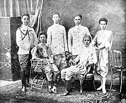 Siamese noblemen wearing raj pattern costume in the 1900s