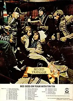 Trafalgar is a 1971 album by the Bee Gees. It was their ninth album (seventh internationally), and was released in September 1971 in the US, and November 1971 in the UK. The album was a moderate hit in the United States, and peaked at No. 34. The lead single "How Can You Mend a Broken Heart?" was the first Bee Gees' No. 1 single in the United States but failed to chart in Britain as did the album. It is Geoff Bridgford's only full-length appearance on a Bee Gees album as an official member.