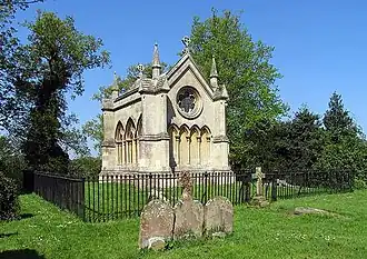 Sigismund Trafford Southwell, High Sheriff of Norfolk in 1818, died in 1827. His wife Margaret approached Anthony Salvin to design a mausoleum which was constructed c.1830.[3] It was built in the churchyard of St Mary the Virgin, Wroxham.[4] Salvin exhibited the design at the Royal Academy in 1830.[4] The style is Early English Gothic,[4] described in the Norfolk 1: Norwich and the North-East volume of Pevsner as a; "correct, rather cold later 13th century style".[5] The mausoleum is a Grade II listed structure.[4]