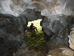The Trail Creek Caves are a group of twelve caves found within the Bering Land Bridge National Preserve on the Seward Peninsula of the U.S. state of Alaska. This is a significant archeological site due to the discovery of several artifacts of ancient hunters. These included stone tools and bone fragments dated to 8,500 years or earlier. The caves were discovered in 1928 by Taylor Moto and Alfred Karmun, locals from Deering, Alaska. Geologist David Hopkins tested the site in 1948. This location was first excavated in from 1949-1950 by Danish archeologist Helge Larsen.[1] The caves are located along Trail Creek 65°47′28″N 163°24′58″W / 65.79111°N 163.41611°W / 65.79111; -163.41611 near its mouth at Cottonwood Creek[2] in the Northwest Arctic Borough.[3]