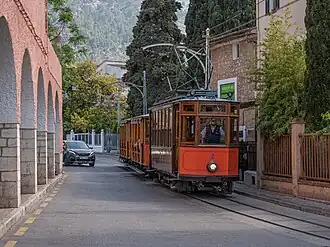 The Tranvía de Sóller (Catalan: Tramvia de Sóller) is a Spanish heritage tramway serving the town of Sóller and the coastal village of Port de Sóller, in the island of Majorca. It is owned by Ferrocarril de Sóller S.A. (FS), the same company operating the heritage rail line linking the town to the city of Palma.