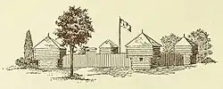 The location of Fort Industry is one of the enduring mysteries of the western frontier.[3] The place of the signing was on the upper Maumee River though the exact location is lost to history.[4] It was possibly a temporary stockade or fortification erected just for the signing.[5][6] Local tradition places the fort at the mouth of the Swan River on the Maumee in Toledo, Ohio, although there is no documented record of this. U.S. government and military records do not mention that any fort or post was ever built there or anywhere with that name. The name does not appear in period letters and documents before or after that time. The name is often associated with Gen. Anthony Wayne as one of the forts he built along the western Ohio border in the Northwest Indian War more than a decade before. However, Gen. Wayne had been dead for nine years at the time of the signing.