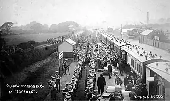 ![]() The 4th Battalion King's Own Royal Lancasters detraining at Trefnant station, 1909 | |||||