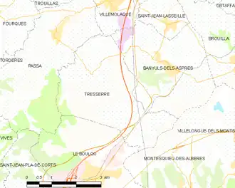 Tresserre is located in the canton of Les Aspres and in the arrondissement of Perpignan.