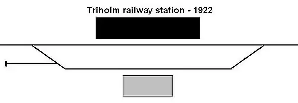 Triholm was a railway station on the Strzelecki railway line in South Gippsland, Victoria, Australia. The station was opened on 29 June 1922. Triholm became the line terminus station from 22 November 1930 when Strzelecki station was closed due to a timber trestle bridge developing a large sway every time a train passed over it.[1] It was deemed uneconomical to rebuild it and the section was closed after being in operation for only eight years. Triholm was then the terminus station until it was closed on 7 August 1941 following flooding of the Lang Lang River, which resulted in damage to one of the four trestle bridges over that river, after which the line was closed back to Yannathan station.