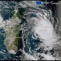 Satellite image of Cyclone Garance, the most recent tropical cyclone to pass near the Mascarene Islands
