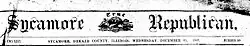True Republican was a semi-weekly pro-Republican newspaper published by Boies & Peck in Sycamore, Illinois, beginning in 1861, and continued into the late 20th century. It was also known as the Sycamore True Republican.[2]