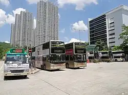 Bus termini could be found at Metro City Plaza in Po Lam; Tsui Lam Estate and Hong Sing Garden in Tsui Lam; Hang Hau station and Hang Hau (North) in Hang Hau; Tseung Kwan O station and Sheung Tak Estate in Tseung Kwan O Town Centre; Tiu Keng Leng station and Kin Ming Estate in Tiu Keng Leng; as well as at Oscar by the Sea, LOHAS Park and the Industrial Estate in the town's southeastern part.