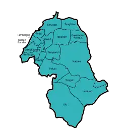 The Tuaran District (Malay: Daerah Tuaran) is an administrative district in the Malaysian state of Sabah, part of the West Coast Division which includes the districts of Kota Belud, Kota Kinabalu, Papar, Penampang, Putatan, Ranau and Tuaran. The capital of the district is in Tuaran Town and the administrative area includes the entire boundary of Tuaran District, covering an area of 116,500 hectares (287,875 acres).[1] Tuaran also one of the districts in Sabah located near Kota Kinabalu, and it is considered part of the Greater Kota Kinabalu area.[2]