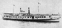 In 1867, the original simple condensing engine was modernized to a double-expansion steam engine and the wooden paddle wheels were replaced with 10-bladed iron wheels.[4] Croatia was used to transport cargo through the Iron Gates of the Danube between the ports of Brăila, Galați and Vienna.[5] The ship was then converted to a passenger ship at the Óbuda shipyard in 1874.[2]