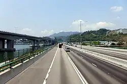 Tuen Mun Road (Chinese: 屯門公路) is a major expressway in Hong Kong which connects Tuen Mun with Tsuen Wan, within the New Territories. It is part of Hong Kong's Route 9, which circumnavigates the New Territories. Opened in 1978, it was once the major trunk route linking the northwest New Territories to urban Kowloon and is known for its frequent traffic jams and road accidents owing to its early design and heavy usage. As a result, speed limits have been enforced to 70–80 km/h (45–50 mph) due to geometric constraints.
