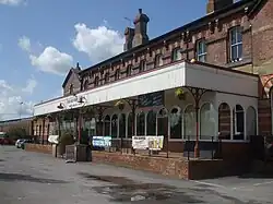 Following closure of the station, the main building was converted into a Beefeater restaurant named "The Old West Station", before being purchased by Herald Inns and Bars which operate it under the same name as a pub-cum-restaurant. It is now a Smith & Western. The building was Grade II listed on 27 March 1986.[24] The former goods yard and stabling sidings are lost under a Sainsbury's supermarket and a Homebase, and the trackbed was made into a car park and the frontage to the supermarket. An agreed corridor was left alongside Linden Park Road to enable any reinstated line to run through the site and a formal agreement was concluded between Tunbridge Wells Borough Council and Lord Sainsbury whereby the company agreed that, if required, they will remove at their own cost any buildings obstructing the path of the railway.[4] In the mid-1990s, a toilet block was constructed on the corridor, but this could be demolished in accordance with the terms of the agreement.[25]