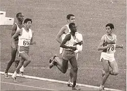 Mohammed Gammoudi (top right) when he won Tunisia's first Olympic gold medal at the 1968 Summer Olympics in Mexico City.