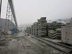 Tunnel rock recycling is a method to process rock debris from tunneling into other usable needs. The most common is for concrete aggregates or as subbase for road building. Crushers and screeners normally used in quarries are stationed at the tunnel site for the purpose which is to crush and screen the rock debris for further use. The largest tunnel rock recycling facility ever to be created was for the construction of the Gotthard Base Tunnel which took 17 years, finishing in 2016. 1/5 of the rock debris excavated for the tunnel was recycled and used as aggregates for the concrete lining inside the tunnel.