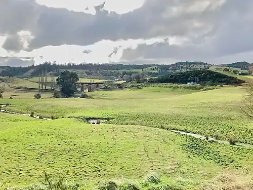 ![]() Hautapu Bridge from the horseshoe curve in 2018. A substation is at the site of Turangerere station | |||||||||||
