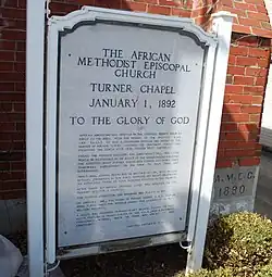 Turner Chapel was an African Methodist Episcopalian Church located at 37 Lakeshore Road West in Oakville, Ontario, Canada.[1] It was established in 1891 by Samuel Adams and his brother-in-law Reverend William Butler.[2] An earlier structure, built on the east side of Sixteen Mile Creek, had burned down. The west side of the river, where artisans lived, was a more welcoming environment for Oakville's "Black Church". The church was named after Bishop Henry McNeal Turner, an advocate of the back-to-Africa movement,[3][4] and the first black chaplain, appointed by Abraham Lincoln, during the American Civil War.[5]