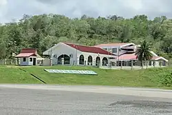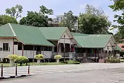 During the 1962 Brunei revolt, rebels from the North Kalimantan National Army briefly took control of Tutong,[22][23] and a convoy of soldiers from the Royal Gurkha Rifles was ambushed.[24][25][26] In response to the growing needs of the town, the government began investing in infrastructure development in the following years. In 1966, a new police station complex was constructed, alongside other public amenities, including a community hall, new government office buildings, guest houses, a public playground, and a telephone exchange.[27] The government's commitment to improving infrastructure continued in 1967 with a $500,000 investment in a new government building, and the construction of a carpentry school, fire station, and additional facilities.[28] Roads were paved, and bridges and wells were built to enhance the standard of living. In 1968, the government constructed a new fire station located near the market along the Tutong River, replacing the former site of Petani. The fire station, which became fully operational on 19 April 1969, housed a trained brigade with 104 firefighters and the necessary equipment to serve the town and surrounding areas.[9] In 1970, the Tutong Municipal Board replaced the former sanitary board, and in 1973, the Sungai Tutong Water Supply Scheme improved the water supply to Bandar Seri Begawan.[29]
