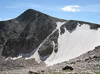Tyndall Glacier is a small cirque glacier in Rocky Mountain National Park in the U.S. state of Colorado.[2] Tyndall Glacier is on the east side of the Continental Divide and in a cirque to the north of Hallett Peak. Tyndall Glacier is both an ice and a rock glacier, with the lower portions of the glacier being composed primarily of rock debris and a small portion of ice.[3]