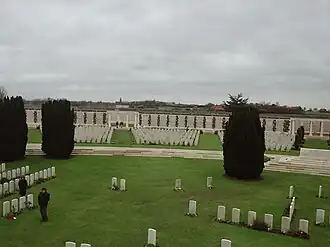 The cemetery has several notable graves and memorials, including the grave of Private James Peter Robertson (1883–1917), a Canadian awarded the Victoria Cross for bravery in rushing a machine gun emplacement and rescuing two men from under heavy fire. He was killed saving the second of these men on 6 November 1917.[1]