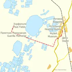 2. ^ Болашенко, С. (2 December 2006). УЗКОКОЛЕЙНАЯ ЖЕЛЕЗНАЯ ДОРОГА ТЁСОВСКОГО ТРАНСПОРТНОГО УПРАВЛЕНИЯ [Tyosovo peat narrow gauge railway] (in Russian).