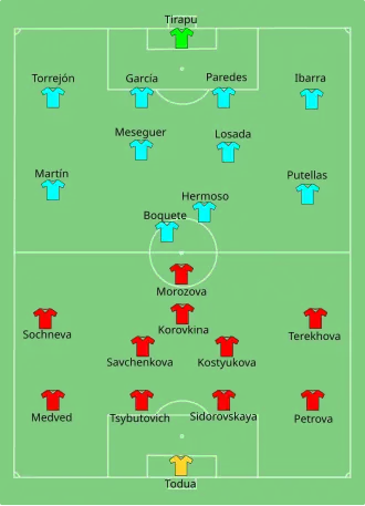 MF 14 Tatyana Skotnikova Yellow card 90' upward-facing green arrow 68'