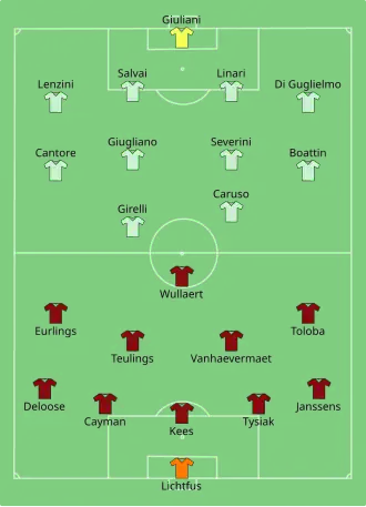 - ^ a b c "Tactical Line-ups – Belgium v Italy" (PDF). UEFA.com. Union of European Football Associations. 3 July 2025. Retrieved 3 July 2025.