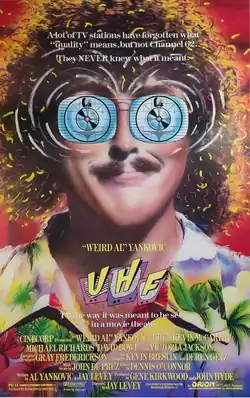 Yankovic stars as shiftless dreamer George Newman, who stumbles into managing a low-budget television station and surprisingly succeeds with his eclectic programming choices, spearheaded by the antics of a janitor turned children's television host, Stanley Spadowski (Richards). The competitive upstart provokes a major network station. The title refers to the ultra high frequency (UHF) analog television broadcasting band on which such low-budget television stations were often placed in the United States. Yankovic and Levey wrote the film following Yankovic's second album, "Weird Al" Yankovic in 3-D, and set parodies within George's vivid imagination.
