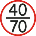 The number below the line always shows a higher speed and applies to passenger trains, parcel and postal trains and light locomotives, while the top number applies to all other trains.[21][22] This example therefore is displaying a maximum permissible speed of 70 mph (110 km/h) for passenger trains, parcel and postal trains and light locomotives, in addition to a maximum permissible speed of 40 mph (64 km/h) for all other trains.