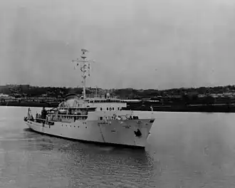 USNS Kane (T-AGS-27) was a Silas Bent-class survey ship acquired by the United States Navy and delivered to Military Sealift Command in 1967. Kane spent her career performing oceanographic surveys. The ship was equipped with the Oceanographic Data Acquisition System (ODAS) as were oceanographic survey ships USNS Silas Bent (T-AGS-26) and USNS Wilkes (T-AGS-33).[1]