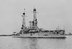 Alabama's next significant action was the cruise of the Great White Fleet around the world, which started with a naval review for President Theodore Roosevelt in Hampton Roads.[3] The cruise of the Great White Fleet was conceived as a way to demonstrate American military power, particularly to Japan. Tensions had begun to rise between the United States and Japan after the latter's victory in the Russo-Japanese War in 1905, particularly over racist opposition to Japanese immigration to the United States. The press in both countries began to call for war, and Roosevelt hoped to use the demonstration of naval might to deter Japanese aggression.[6]