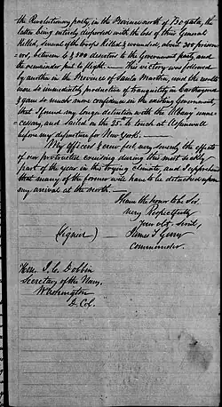 In his last letter dated 28 September 1854, Commander Gerry also informed Commodore Newton of his hazardous diplomatic mission conveying confidential documents.[11]