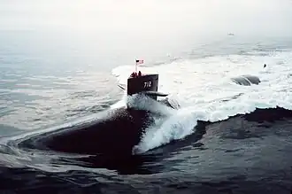 USS Atlanta (SSN-712), a Los Angeles-class submarine, was the fifth ship of the United States Navy to be named for Atlanta, Georgia. The contract to build her was awarded to Newport News Shipbuilding and Dry Dock Company in Newport News, Virginia, on 1 August 1975 and her keel was laid down on 17 August 1978. She was launched on 16 August 1980 sponsored by Mr. Sam Nunn, and commissioned on 6 March 1982, with Commander Robin J. White in command.