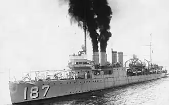 USS Dahlgren (DD-187/AG-91) was a Clemson-class destroyer which served in the United States Navy during World War II. Entering service in 1920, the ship had a brief active life before being placed in reserve in 1922. Reactivated in 1932, Dahlgren remained in service mainly as a test ship until 1945. She was sold for scrapping in 1946. She was named for Rear Admiral John A. Dahlgren (1809–1870), and was the second ship of three which served in the US Navy to receive the name.