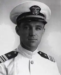George Philip Jr. was born on 14 April 1912 in Fort Pierre, South Dakota, to George Philip (1880 – 1948), a Scottish immigrant from Morayshire, Scotland and Alice Island "Isle" Waldron (1890 – 1972), of part Oglala Lakota descent and also born in Fort Pierre. He was known as Geordie.[3] He attended the South Dakota School of Mines in Rapid City, South Dakota before his appointment to the United States Naval Academy. After completion of the course of instruction at the Naval Academy, he was commissioned an Ensign on 6 June 1935. He continued to progress in grade until his promotion to Commander on 4 September 1944. During this period he served under a variety of commands including: USS Mississippi (1935–37), USS California (1937–38), USS Ellet (1938–40), USS O'Bannon (1942-43). For his service during the Solomon Islands campaign, Philip was awarded the Silver Star Medal and O'Bannon received the Presidential Unit Citation.[4] He then served with Operational Training Command, Pacific Fleet, San Diego, California (1943–44).